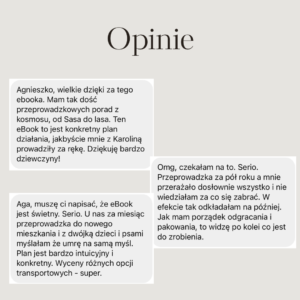 „Prosta Przeprowadzka” to pierwszy w Polsce kompleksowy plan przeprowadzki. Poprowadzi cię za rękę przez wszystkie formalności, przegląd i odgracanie niepotrzebnych rzeczy oraz pakowanie tych, które chcesz przenieść do nowego domu. Wraz z Karoliną Górniak-Kulą @shakeyourmess_homeorganization stworzyłyśmy wyjątkowy ebook stworzony z myślą o tych, których wizja przeprowadzki nieco przeraża.